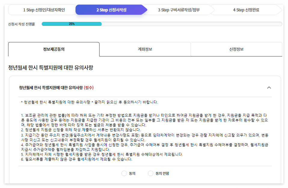 2. 청년월세 특별지원 온라인 신청 4단계